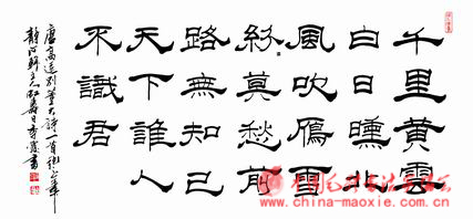 中国著名书法篆刻家李霞,北京人,现任中华人民共和国文化部诗书画研究院研究员、中国松阳书画研究院副院长、中国东海书画艺术研究会理事、江苏省书谱文化研究会常务理事、中国毛体书法家协会常务理事。“桃李新秀悟心灵,虹霞书篆敏慧升”。她自幼酷爱书法篆刻艺术,并拜我国著名书法大师贾松阳先生为师,经多年的潜心研习,博采众长,在楷、行、草、隶、篆诸体均有极高的造诣。尤其是篆书深受当代名家吴昌硕、吴让之、邓石如、徐柏涛等老前辈们的影响。观其印作,她印外求印,除取法传世秦汉玺印之外,又取资于钟鼎泉布、秦砖汉瓦、镜铭碑碣,并追求重现铜印光洁研美的本来面目,独具风采;观其章法,独具匠心,险象丛生,稳中求奇,扑拙老到,是一位当代书坛极富个性的书法篆刻艺术家。“世界大爱,中国不败”。著名书法篆刻艺术家李霞女士于2008年6月与诸多书画艺术家昼夜奋战,为汶川地震捐赠100米书画精品;2008年8月与九位著名书画艺术家共同捐赠奥运会书画精品208米;2007年6月被“江苏省书谱文化研究会”聘为常务理事,在“纪念孙过庭诞辰1359周年全国书画艺术大展”中荣获“书谱文化研究卓越贡献奖”;2007年10月纪念毛泽东词“蝶恋花•答李淑一”发表50周年全国书画大赛中,荣获金奖。2008年9月纪念毛泽东诞辰115周年“毛泽东诗词”全国书画大赛中荣获金奖。特授予“中国当代最具影响力书画家”光荣称号!