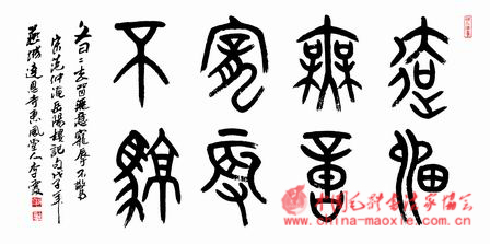 中国著名书法篆刻家李霞,北京人,现任中华人民共和国文化部诗书画研究院研究员、中国松阳书画研究院副院长、中国东海书画艺术研究会理事、江苏省书谱文化研究会常务理事、中国毛体书法家协会常务理事。“桃李新秀悟心灵,虹霞书篆敏慧升”。她自幼酷爱书法篆刻艺术,并拜我国著名书法大师贾松阳先生为师,经多年的潜心研习,博采众长,在楷、行、草、隶、篆诸体均有极高的造诣。尤其是篆书深受当代名家吴昌硕、吴让之、邓石如、徐柏涛等老前辈们的影响。观其印作,她印外求印,除取法传世秦汉玺印之外,又取资于钟鼎泉布、秦砖汉瓦、镜铭碑碣,并追求重现铜印光洁研美的本来面目,独具风采;观其章法,独具匠心,险象丛生,稳中求奇,扑拙老到,是一位当代书坛极富个性的书法篆刻艺术家。“世界大爱,中国不败”。著名书法篆刻艺术家李霞女士于2008年6月与诸多书画艺术家昼夜奋战,为汶川地震捐赠100米书画精品;2008年8月与九位著名书画艺术家共同捐赠奥运会书画精品208米;2007年6月被“江苏省书谱文化研究会”聘为常务理事,在“纪念孙过庭诞辰1359周年全国书画艺术大展”中荣获“书谱文化研究卓越贡献奖”;2007年10月纪念毛泽东词“蝶恋花•答李淑一”发表50周年全国书画大赛中,荣获金奖。2008年9月纪念毛泽东诞辰115周年“毛泽东诗词”全国书画大赛中荣获金奖。特授予“中国当代最具影响力书画家”光荣称号!